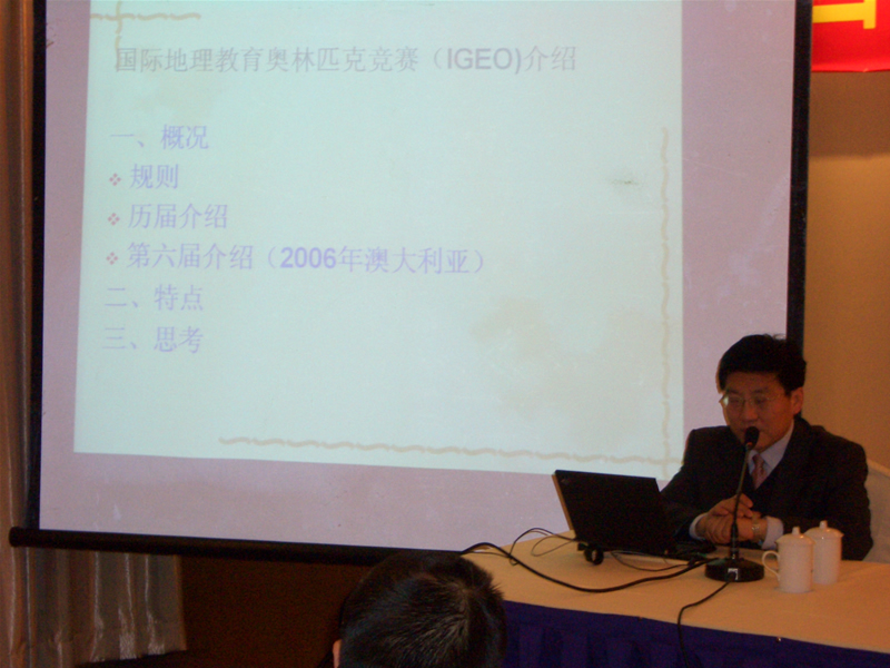 21日下午,在中国地理学会理事、广东省教育厅教研室周顺彬高级教师的主持下,全体师生听取了韦志榕编审和IGU教育委员会委员、中国地理学会教育工作委员会秘书长、北京师范大学王民教授所作的“迎接新高中地理课程的挑战”、“关于国际中学生地理奥林匹克竞赛”的报告。会上还邀请王万里老师(广州市执信中学高级教师)和罗宽国老师(四川省绵阳东辰国际学校一级教师)分别就“开发地理校本课程,培养学生人文素养”、“着力培养中学生地图素质”问题作了大会交流。